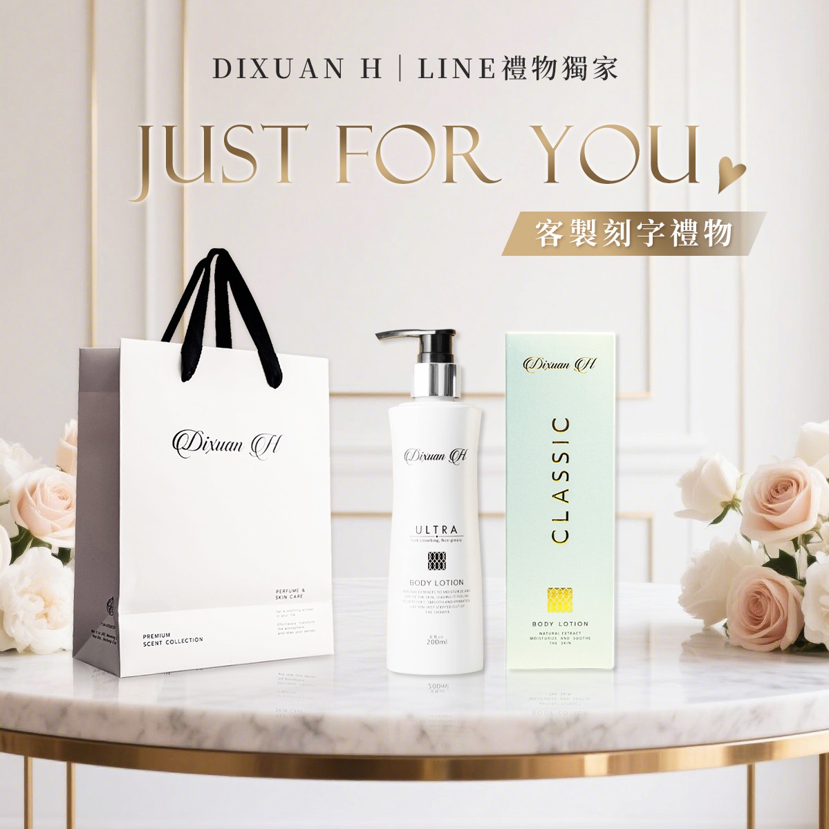 [祝你生日快樂❤️]送小花束【Dixuan H】精華奇肌身體乳-超美白|『LINE禮物獨家組合』|客製化刻字服務(贈禮物袋)|質感輕奢香氛禮物|生日禮物 / 閨蜜送禮 / 情人節禮物 / 客製化禮物