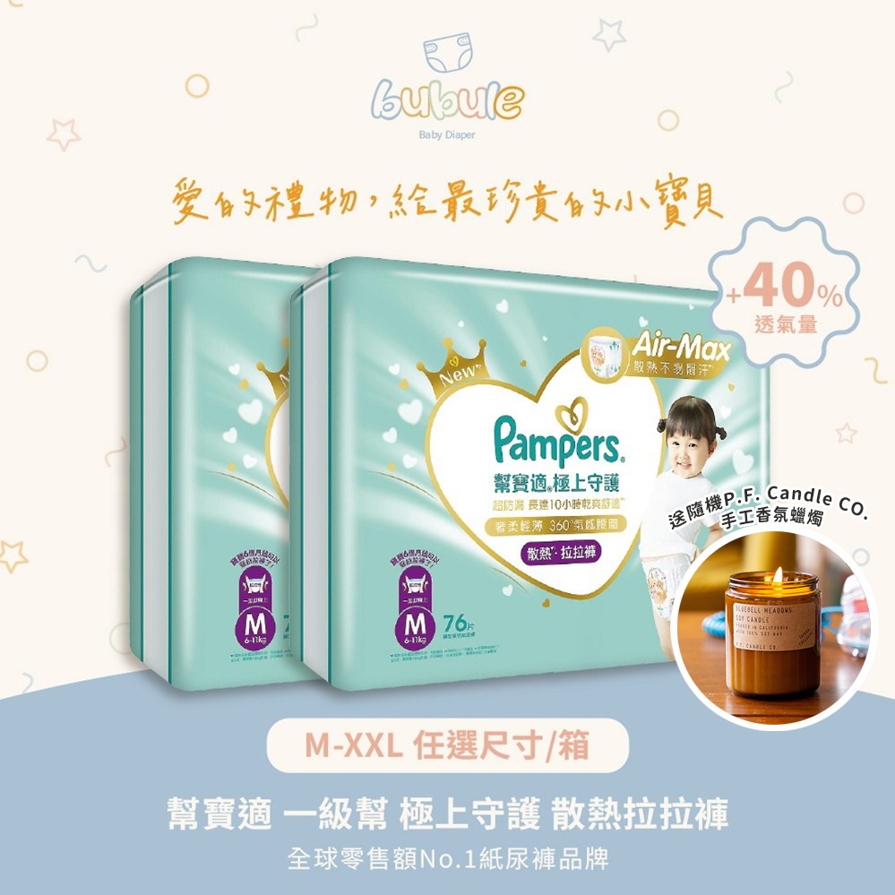🚚快速出貨1+1新生彌月禮【布布樂Bubule】幫寶適 一級幫極上守護散熱拉拉褲 M L XXL 加隨機融蠟燈組G7