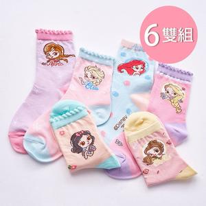 【ONEDER】正版迪士尼公主短襪 艾莎女童襪 白雪公主 小美人魚 貝兒公主 15-18/19-21cm-6雙組