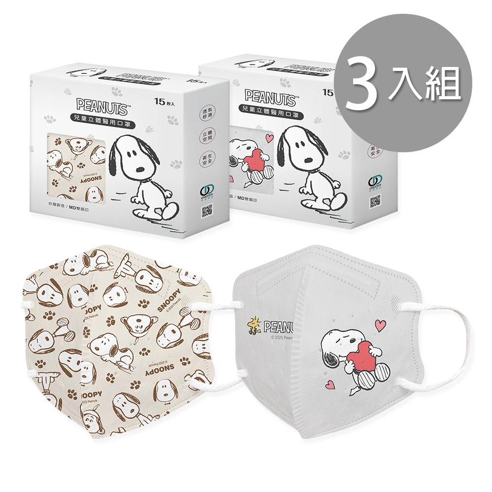 【ONEDER】史奴比平面口罩(30入x3盒) 鋼印 一般成人醫療口罩-3件組(SN-BZ001)
