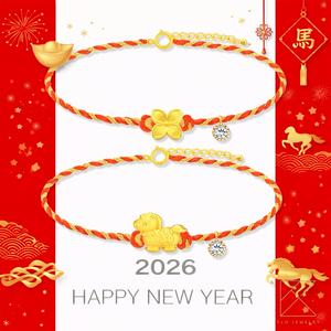 【TLH】黃金墜編織手繩 純金999 HORSE發生 約重0.08錢±0.02 (馬年 過年 送禮)