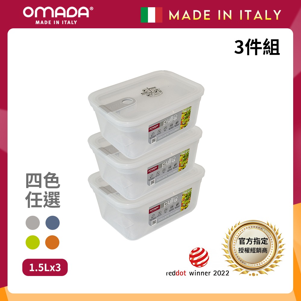 【OMADA】禮物精選-義大利製 主廚CHEF 易拉 保鮮盒0.75L+1L+1.1L+1.5L+2.3L(實用五件組)任選色
