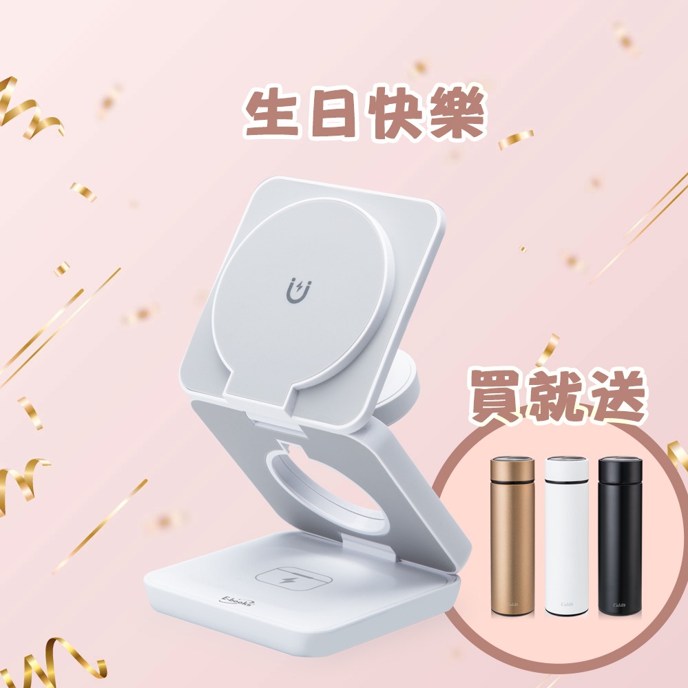 快速出貨🚚【因為你值得_加倍寵愛送保溫杯】台灣製造22W三合一支架摺疊磁吸快充無線充電器 B98 E-books