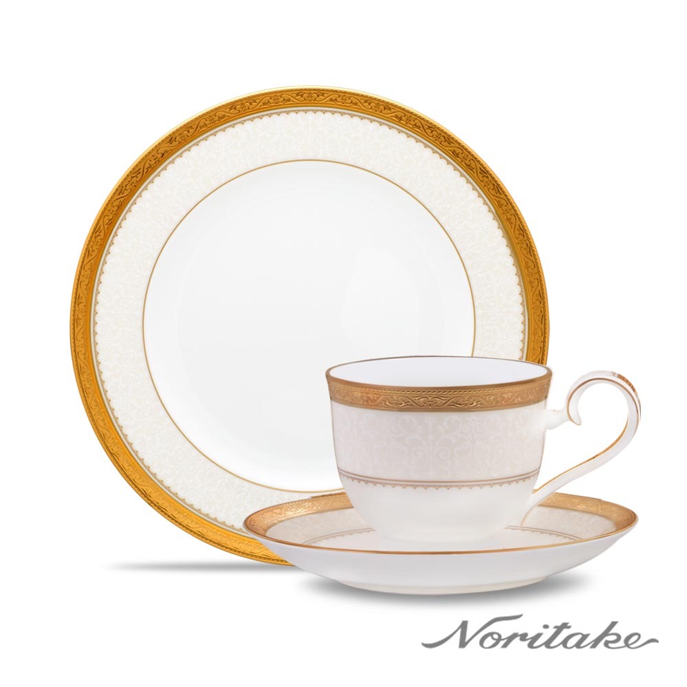 圓潤寓意圓滿,典藏一份細緻心意|生日|喬遷|新婚【日本Noritake】夏日金輪西式24.5cm圓盤2入禮盒組(骨瓷)
