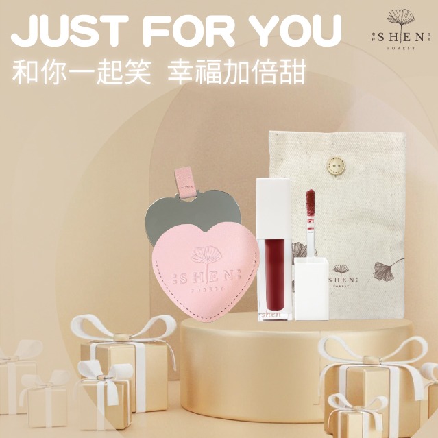 [快速出貨]【森SHEN】情人節快樂🌹裸光潤色防曬乳30g +植潤修護唇油+愛心隨身化妝鏡+粉撲 (享禮盒包裝) |純素保養成分
