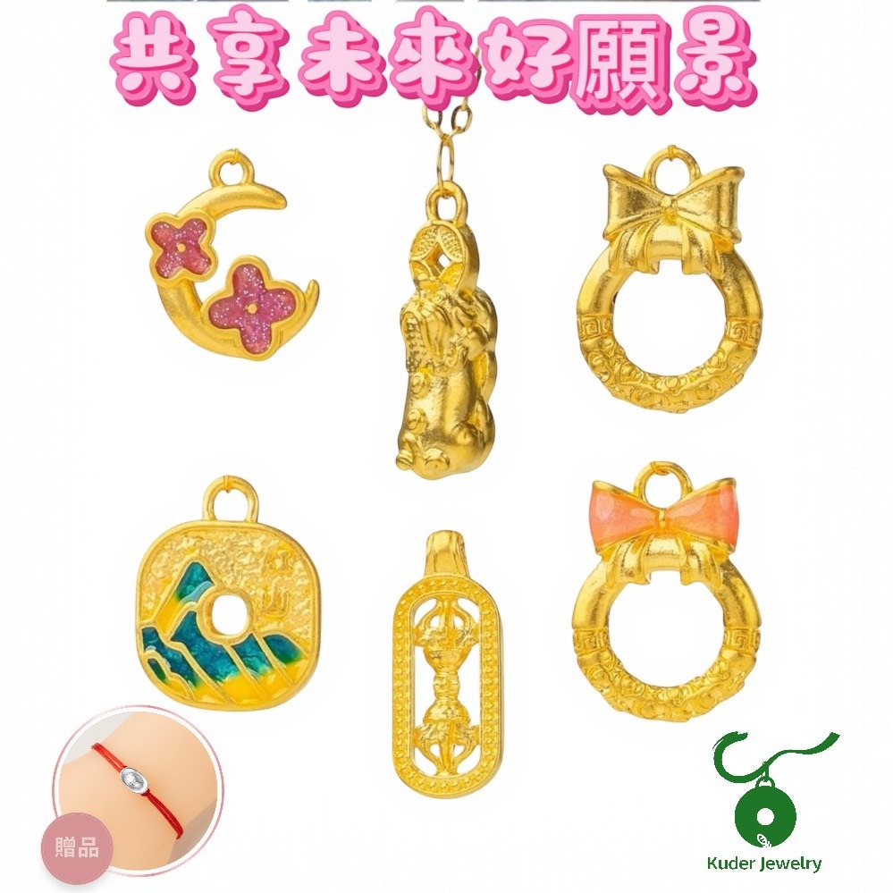 [快速出貨]【Kuder Jewelry】黃金全心愛妳墜飾(約0.07-0.05錢)大小款,任買一條贈本命年守護手鍊一條, 配永生玫瑰禮盒 『LINE禮物獨家組合』