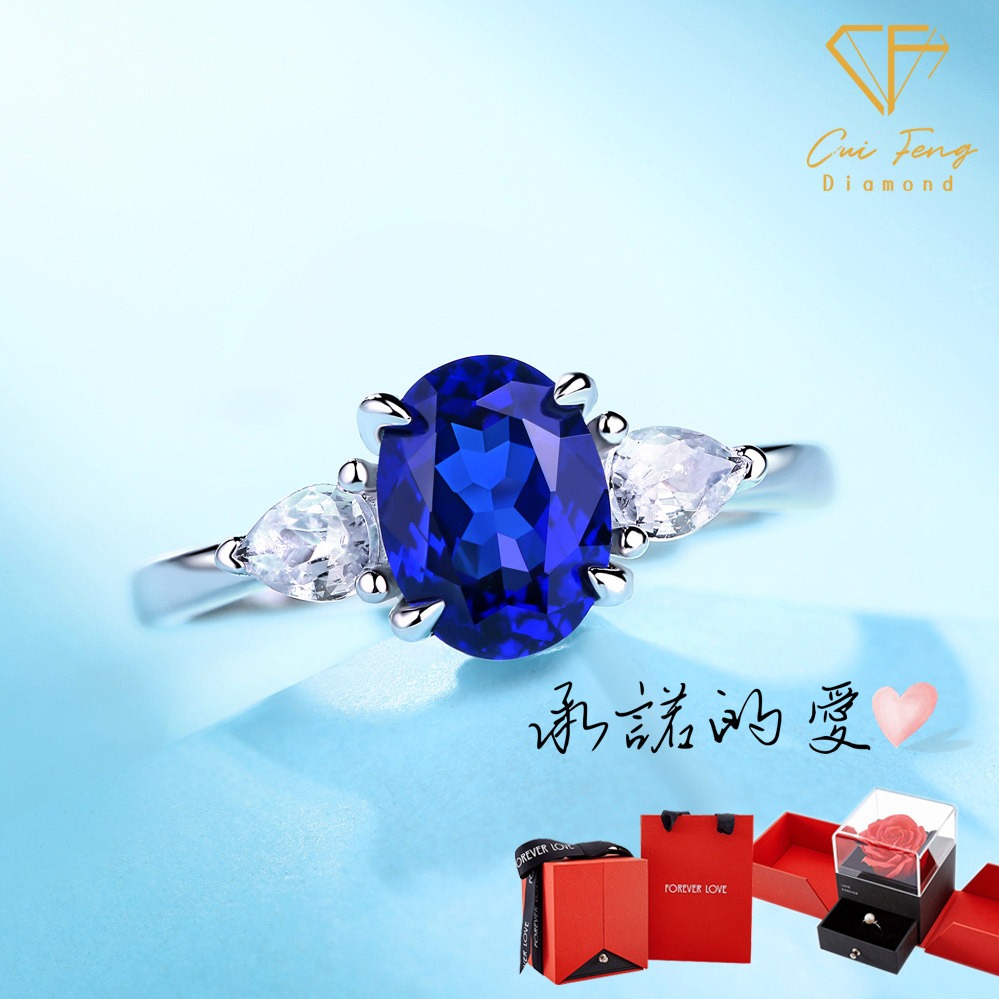 [快速出貨] 幸福禮物💙培育藍寶石系列【CF鑽飾】藍寶石 女戒 項鍊 耳環 手鍊 聖誕 交換禮物 鑽戒 求婚 告白 紀念日