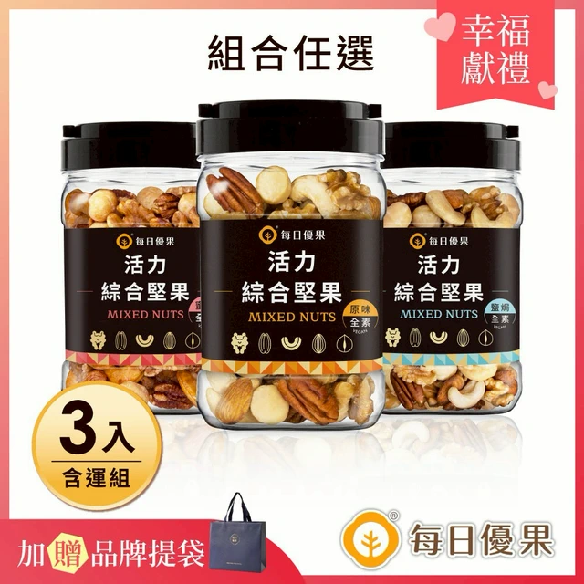 【每日優果】活力綜合堅果580G大包裝(口味任選)+養生綜合果實580G大包裝(共2入)【加贈品牌提袋】