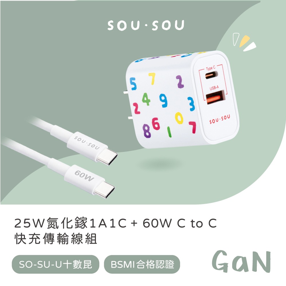 快速出貨🚚【充滿好運_新年快樂】SOU.SOU十數昆 25W氮化鎵充電器1A1C + 60W CtoC快充傳輸線組