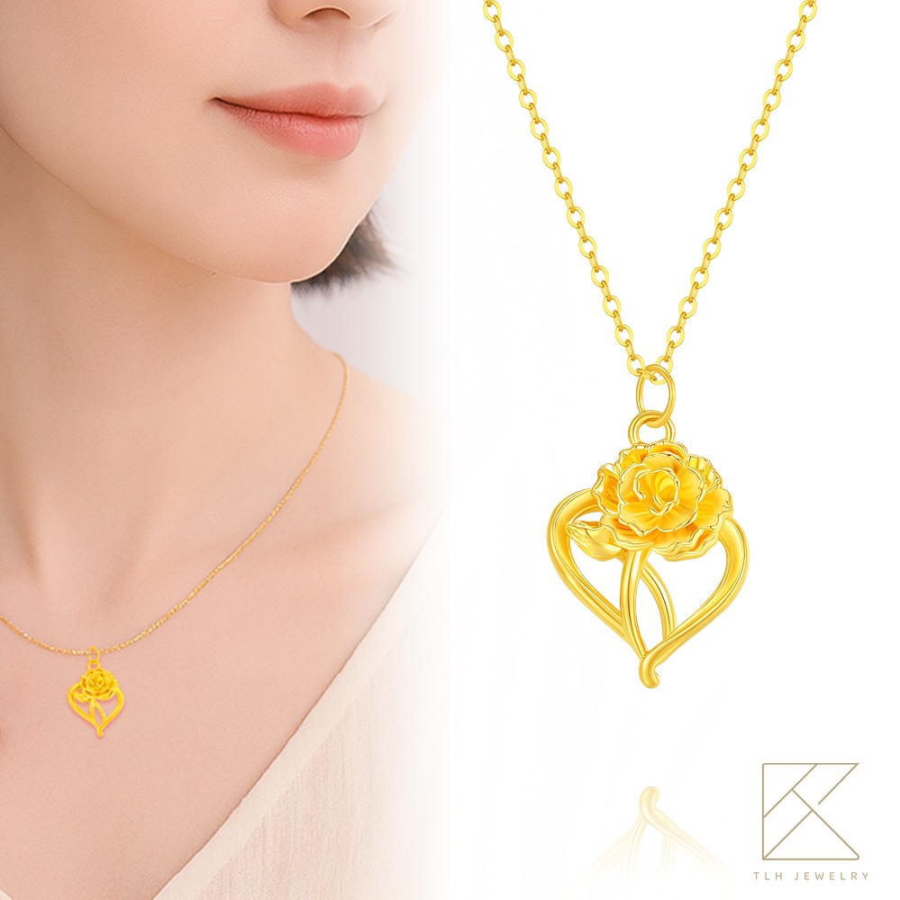【快速出貨】【TLH】黃金墜項鍊 純金999 月上玫瑰 約重0.07錢±0.01