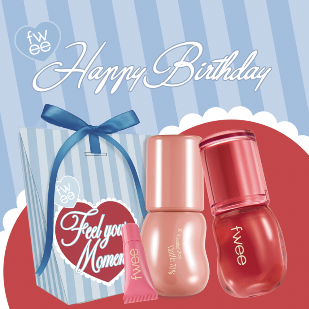 快速出貨【fwee】生日快樂🎂獨家組合 粉色心動鎖色唇露2入組+3D迷你唇釉(獨家禮盒)