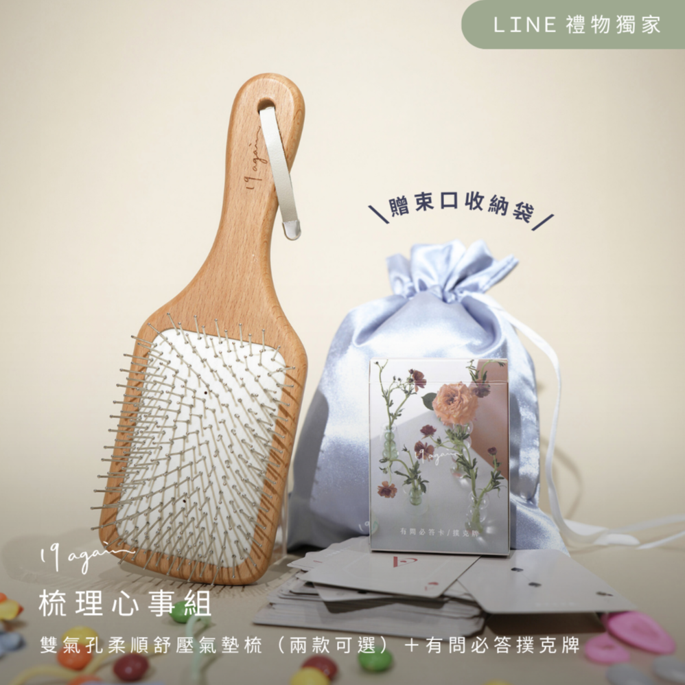 生日禮物推薦【19again】精緻髮品組-氣墊隨身梳+舒心果香護髮精華15ml (贈)大束口袋-送禮推薦