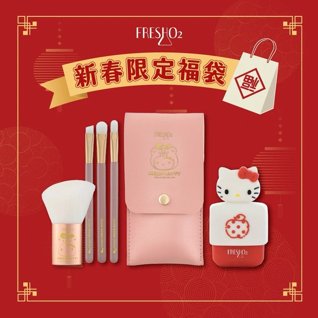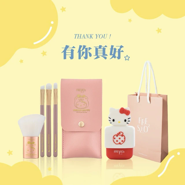 [快速出貨]【FreshO2】三麗鷗聯名HelloKitty勢必有4把刷具組+上妝海綿小幫手3入 眼影刷 粉撲|生日禮物 送禮 新年彩妝福袋 情人節 畢業禮 聖誕 耶誕 紀念日 喬遷 交換禮物