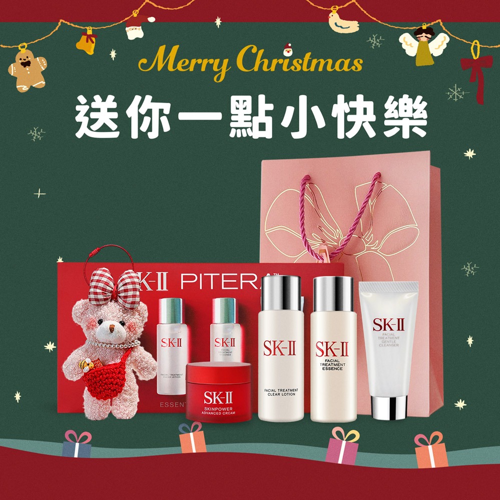 ⚡快速出貨|【SK-II】暢銷閃耀之禮[洗面乳20g+亮采水30ml+青春露30ml+致臻活膚霜15g+玩偶熊掛飾]附精品禮袋-平輸版