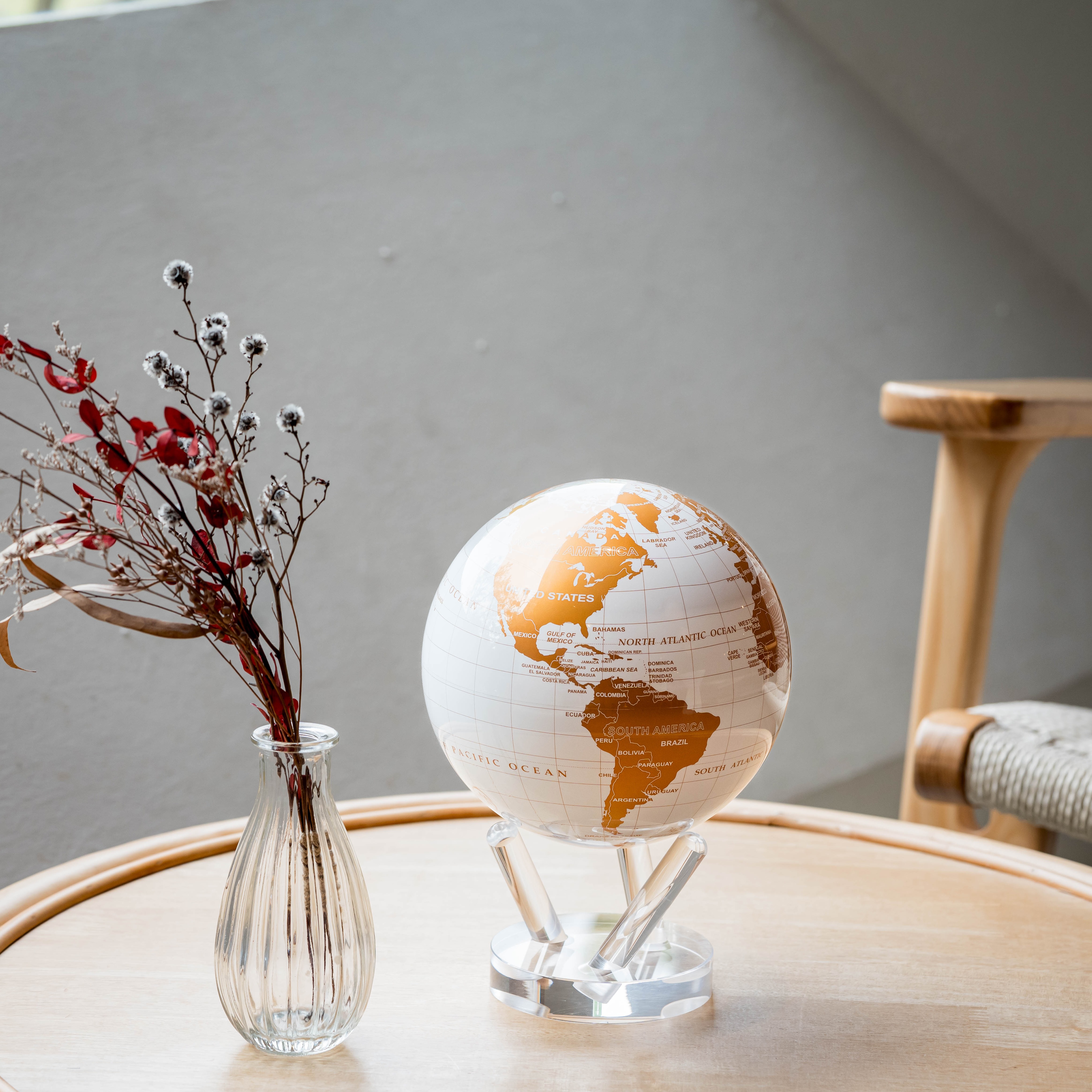 [快速出貨]【MOVA光能地球儀】復古米黃地圖 居家擺設.精緻送禮.轉運.紀念日.自轉.情人節