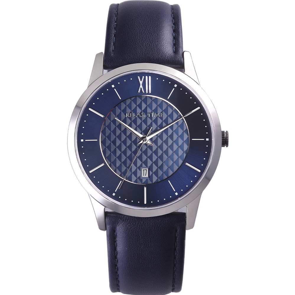RELAX TIME 石英款 立體格紋時尚對錶 -黑 (RT-118-5M+RT-118-5L) 42+36mm