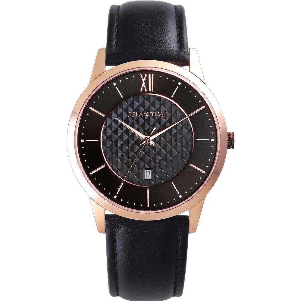 RELAX TIME 三眼腕錶 黑潮優雅|玫瑰金 (RT-81-2)