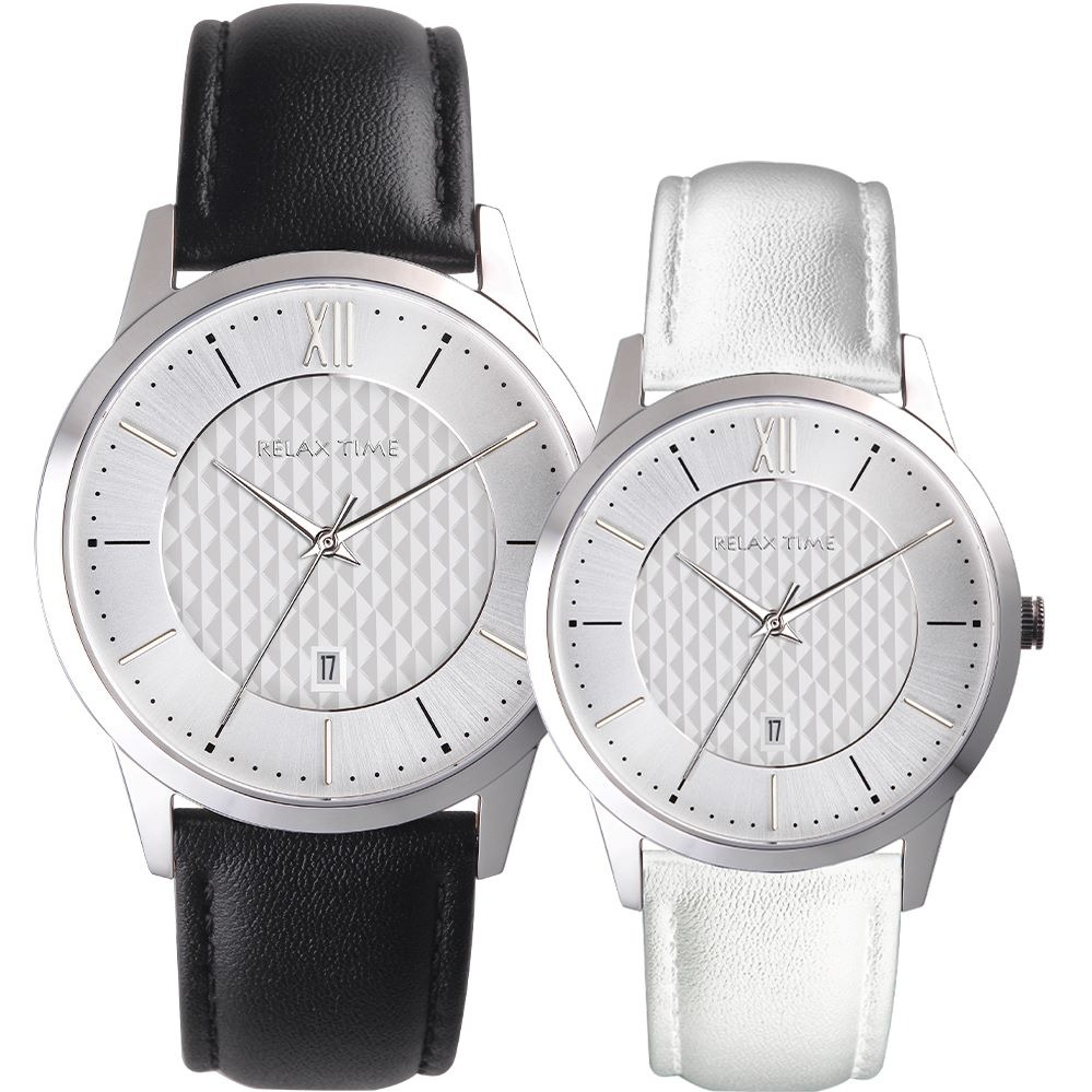 RELAX TIME 石英款 立體格紋時尚對錶 -黑 (RT-118-5M+RT-118-5L) 42+36mm