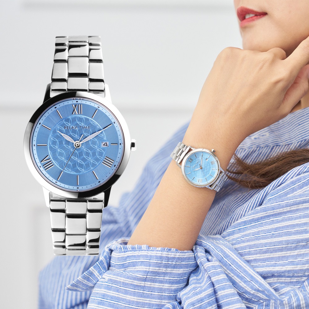 RELAX TIME 石英款 立體格紋 時尚女錶-藍 (RT-118-2L) 36mm