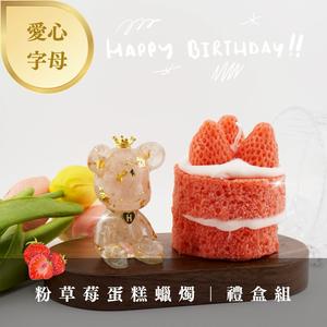 Hourrae荷萊 粉草莓蛋糕 招財好運晶熊 客製愛心字母熊 Q~Z 造型蛋糕蠟燭 水晶擺件 生日禮 交換禮物