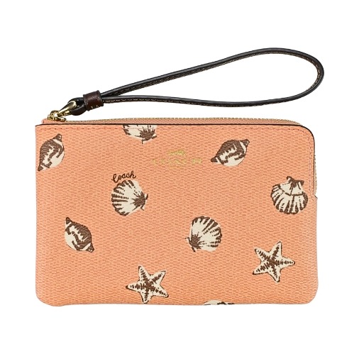 [平輸版] 【COACH】 仿刺繡櫻桃皮雕亮粉燙印白堊色皮革手掛拉鍊長夾 真品平輸