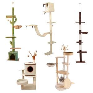 【iCat寵喵樂】仙人掌頂天柱小窩貓跳台 | 多功能貓爬架 貓抓板 貓窩 頂天柱(仙人掌頂天柱小窩/華麗樂園五層/頂高通天觀景/懸掛式/經典白仿麻布)