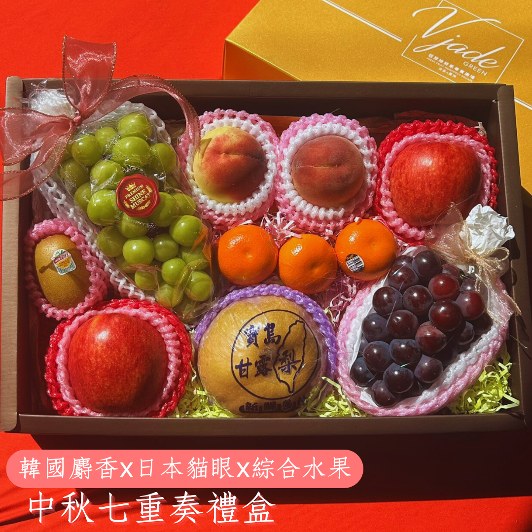 【鮮果綠】月滿七福-大高②韓國麝香X日本蜜柑X綜合水果 «精美禮盒 誠意滿滿» 精美水果禮盒