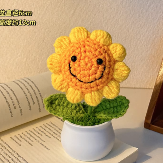 祝你新年欣欣向榮! 『欣欣向榮』針織花向日葵盆栽 -願你職場陸上枝葉繁茂!畢業季-開店禮物/搬家禮物/喬遷禮物/升職禮物/摩羯座生日禮物【Missing想念你】
