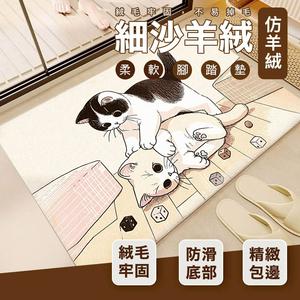 【帕斯特地墊】細沙羊絨地墊 打鬧喵 40x60cm 天秤座生日禮物 (仿羊絨地墊/居家/臥室/短毛/地墊)