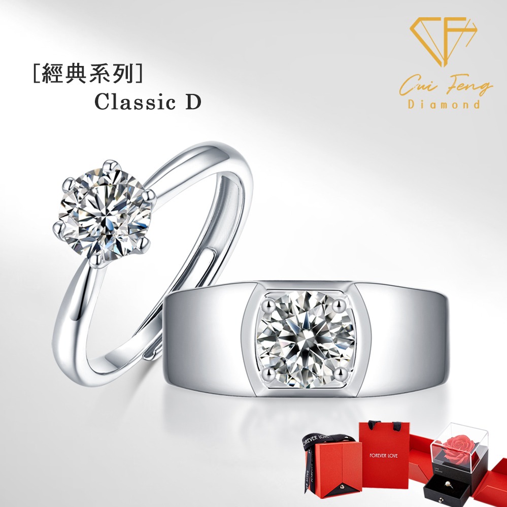 [快速出貨]【CF鑽飾】戒指 奢華E《莫桑鑽一克拉男女對戒》新年🌹贈玫瑰花禮盒 生日禮物 送禮 紀念日