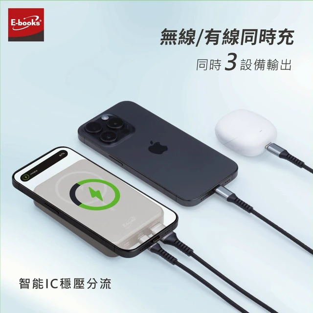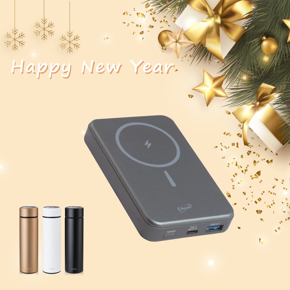 快速出貨🚚【新年快樂_心意加倍送保溫杯】磁吸自帶雙線五輸出無線充電快充行動電源 B101 E-books【台灣製造】