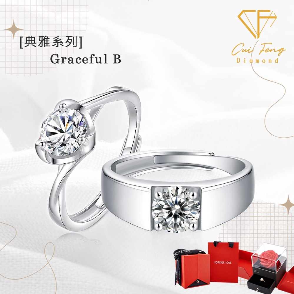 [快速出貨]【CF鑽飾】戒指 奢華G《莫桑鑽一克拉男女對戒》新年禮物 🌹贈玫瑰花禮盒 情人節 生日送禮 紀念日
