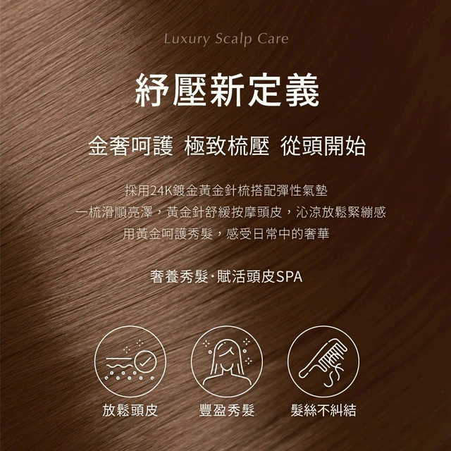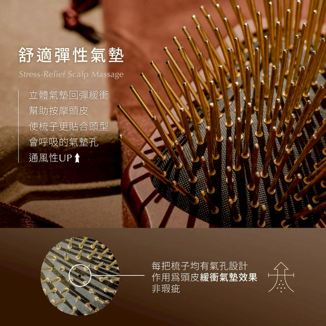 快速出貨【TRIFORCE 翠芙思】萬事梳心禮盒-24K金奢頭皮紓壓氣墊梳+收納袋+雲朵深層絲柔護髮素)