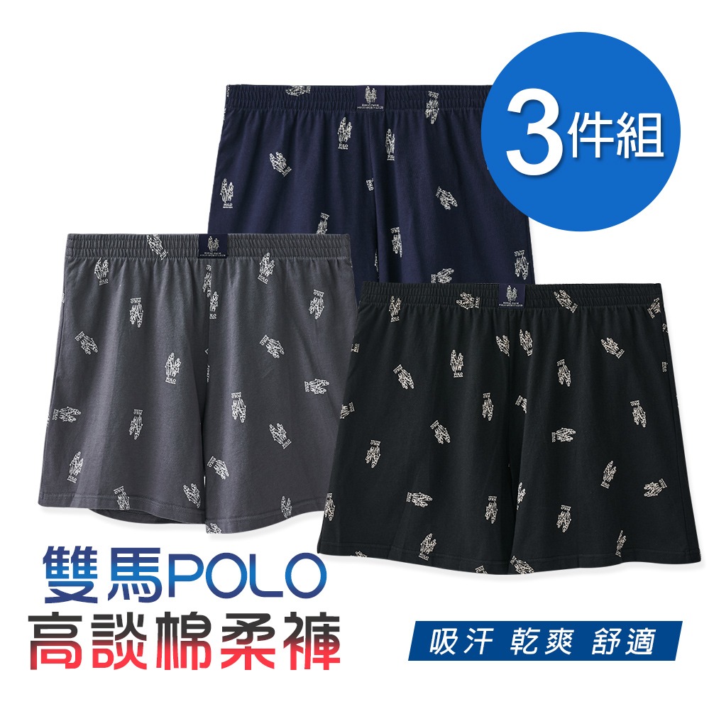 【ONEDER】美國POLO雙馬騎士莫代爾平口褲 居家褲-M/L/XL-3件組(RP-C004)
