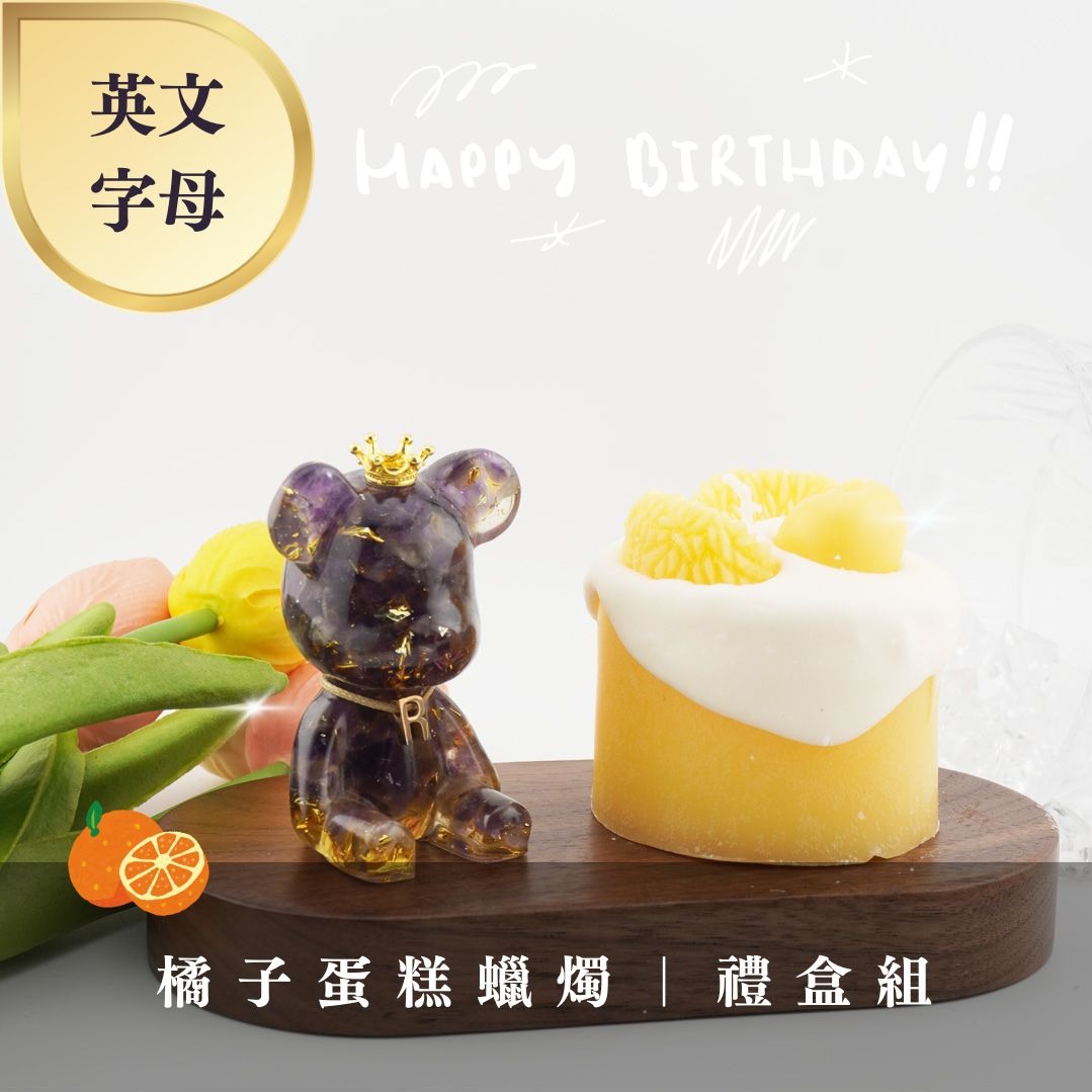 Hourrae荷萊 橘子蛋糕 招財好運晶熊 客製愛心字母熊 Q~Z 造型蛋糕蠟燭 水晶擺件 生日禮 交換禮物