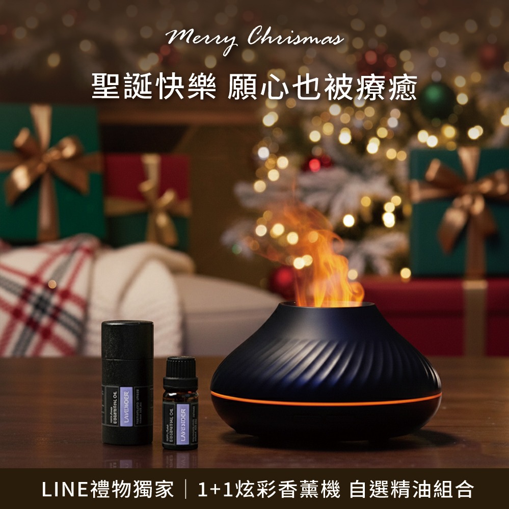 【BRAVOMART HOME】 1+1組合 七彩炫光火焰香薰氛圍燈 加贈香氛精油10ML 水氧機 精油燈 加濕器 淨化能量 免費刻字 天蠍座 射手座 交換禮物 辦公室小物 現貨 生日禮物