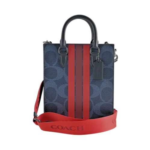 [平輸版] 【COACH】LOGO織帶深藍色丹寧布手提/斜背大款立體方包 真品平輸