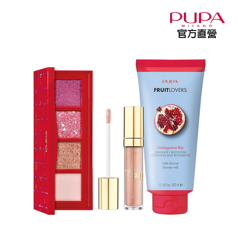 ♏天蠍座生日快樂【PUPA】叢林鸚鵡眼影盤14.8g(多色任選)+盛夏日暮晶透潤唇膏3g.贈果漾沐浴乳300ml.附提袋