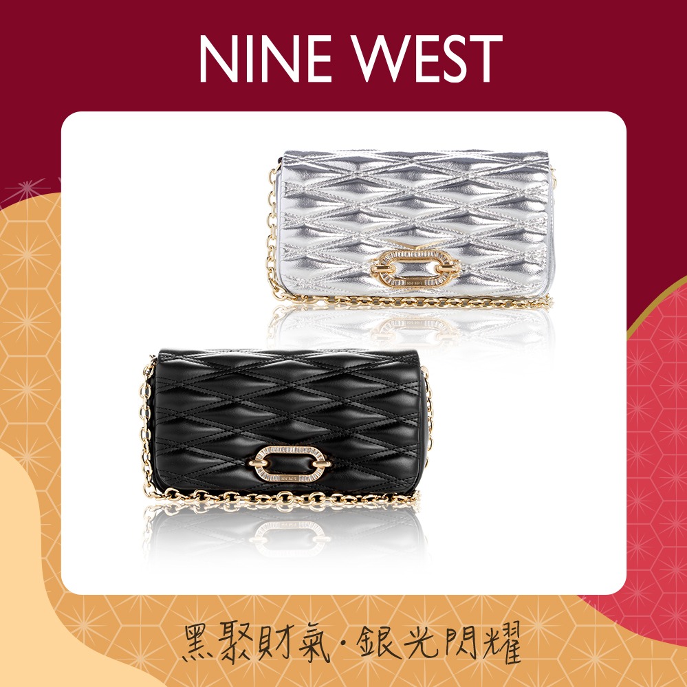 【NINE WEST】真皮鏈帶斜背兩用包-黑色(1812)