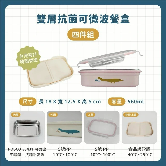 【安琪兒婦嬰百貨】 Moek X Jesper∣雙層抗菌可微波不鏽鋼餐盒四件組-象牙白
