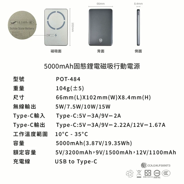 阿愣雙11 優惠券 天蠍座 VIP 好禮 ! 超安全防爆!CCC認證 固態鋰電池 COZY POT-489 固態3C超薄磁吸行動電源 10000mAh