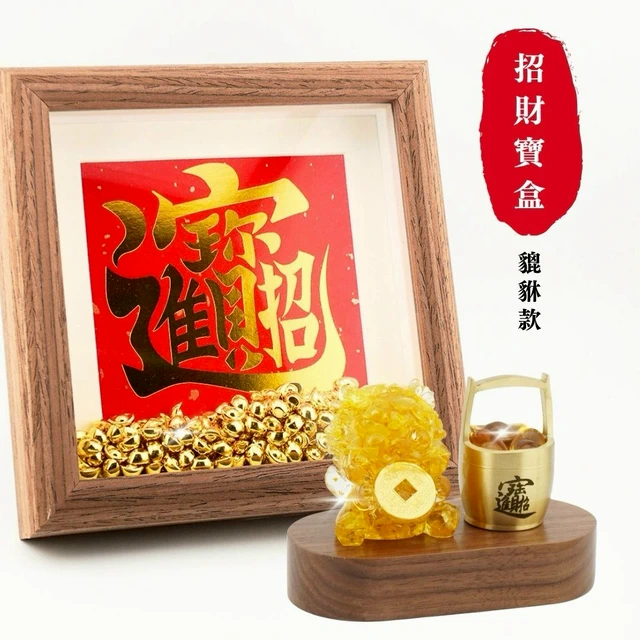 Hourrae荷萊 獨家訂製 神威聚財 招財虎爺 元寶相框 木座 水晶擺件 開店禮 生日禮