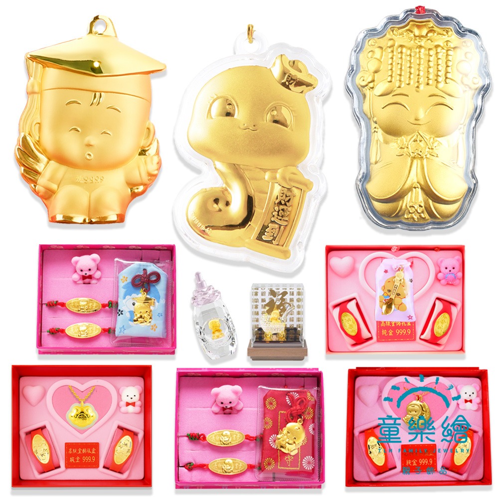 【童樂繪金飾】萌萌鼠 初見之喜彌月千足金和田玉禮盒 (彌月金飾 彌月禮)
