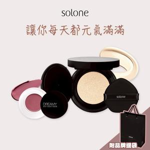 [收禮者自選色號]【Solone】完美裸肌持妝組💯極致裸肌氣墊粉餅+定妝噴霧+隨身蜜粉餅+氣墊粉撲