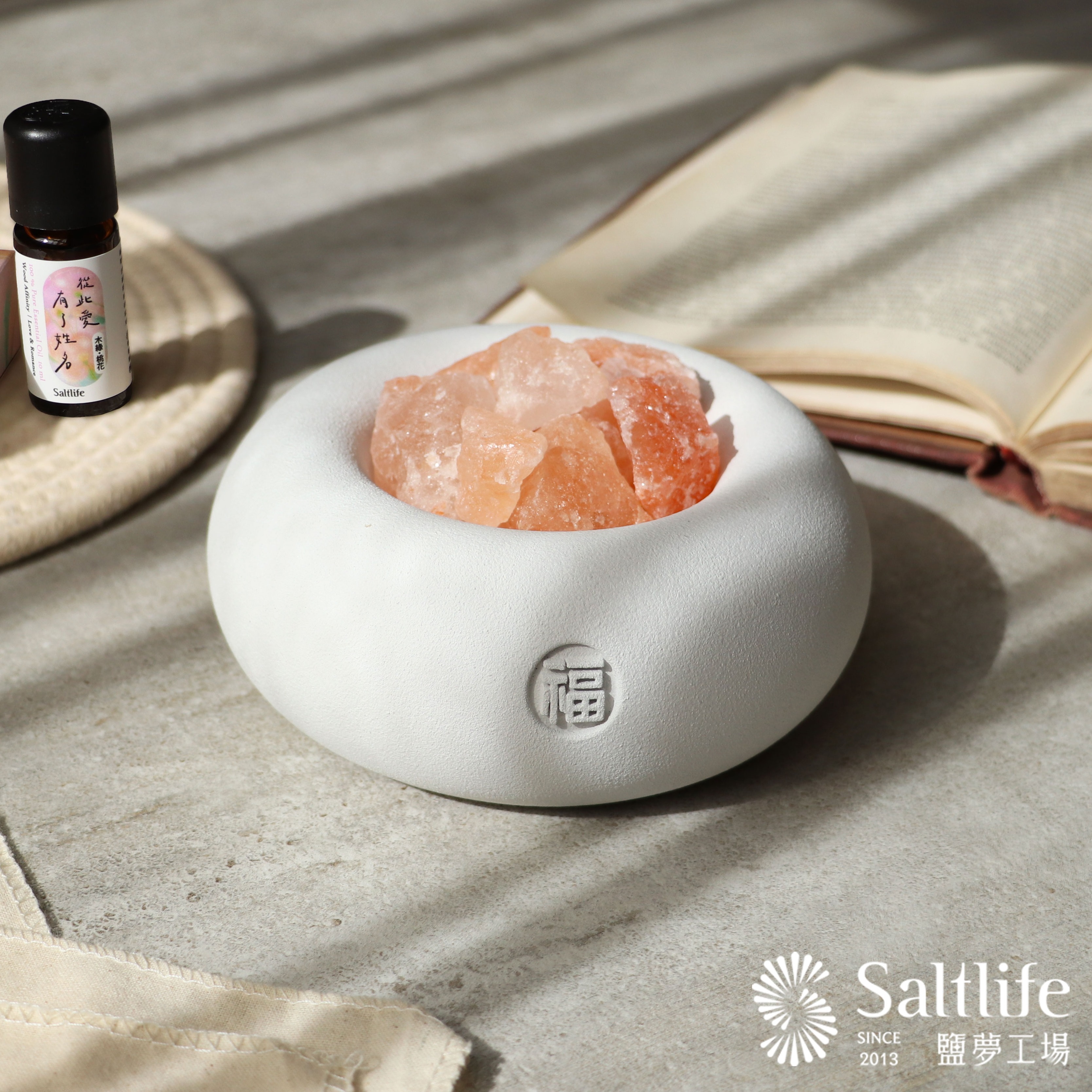 幸福美滿✦天然五行複方精油✦ 【鹽夢工場】鹽晶擴香盆|品牌Logo款 空間擴香淨化 收禮人自選規格 入厝禮 贈禮品精美提袋