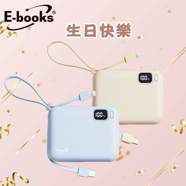 快速出貨🚚【天蠍座生日快樂】台灣製造自帶Type C線數顯雙向2輸出快充行動電源 B129 E-books