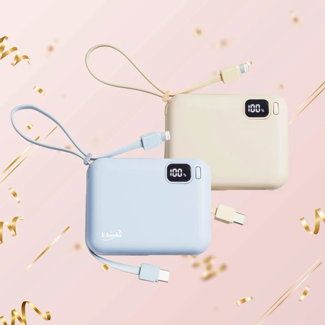 快速出貨🚚【聖誕節快樂】台灣製造自帶Type C線數顯雙向2輸出快充行動電源 B129 E-books