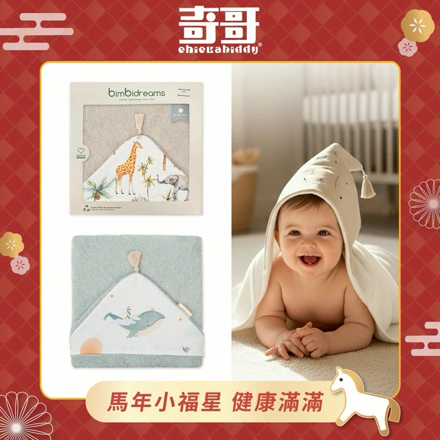 ⭐快速出貨⭐【bimbidreams】純棉連帽圍裙式寶寶浴巾禮盒 100x100cm |寶寶新生兒禮、滿月禮、彌月禮、嬰兒禮盒、新年快樂、馬年吉祥