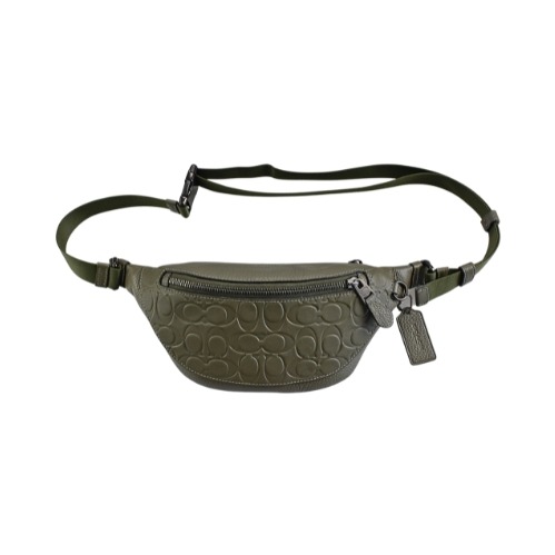 [平輸版] 【COACH】橄欖綠C LOGO浮雕拼接素面皮革方型小款斜背男包 真品平輸