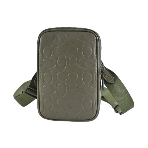 [平輸版] 【COACH】卡其大C Logo PVC拼接素面皮革直式單肩後背胸包男包 真品平輸